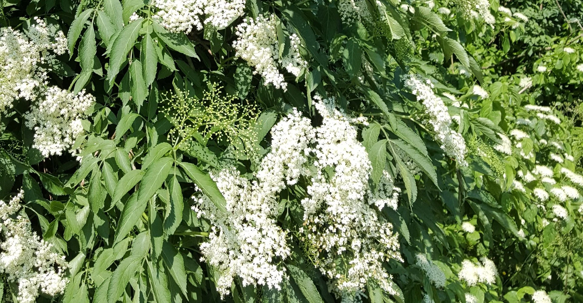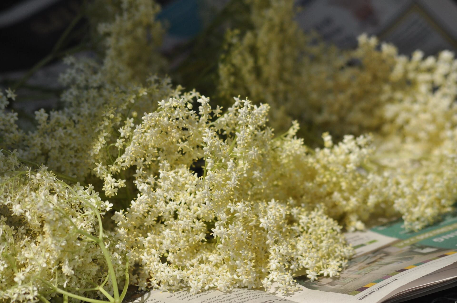 De vlier is een veelvoorkomende grote struik in onze bossen en parken. Normaal gesproken een weinig boeiende struik. Behalve in het voorjaar, wanneer ze getooid is met grote geurende bloemschermen en in de herfst als ze volhangt met diep paarse bessen. Van de bessen kun je lekkere jam of bessensap maken, maar van de bloesem, die maar een paar weken bloeit en die een natuurlijk gist bevat, kun je dus ook allerlei heerlijks maken, waaronder een feestelijk, licht alcoholisch drankje met de veelbelovende naam ‘Vlierbloesemchampagne’.