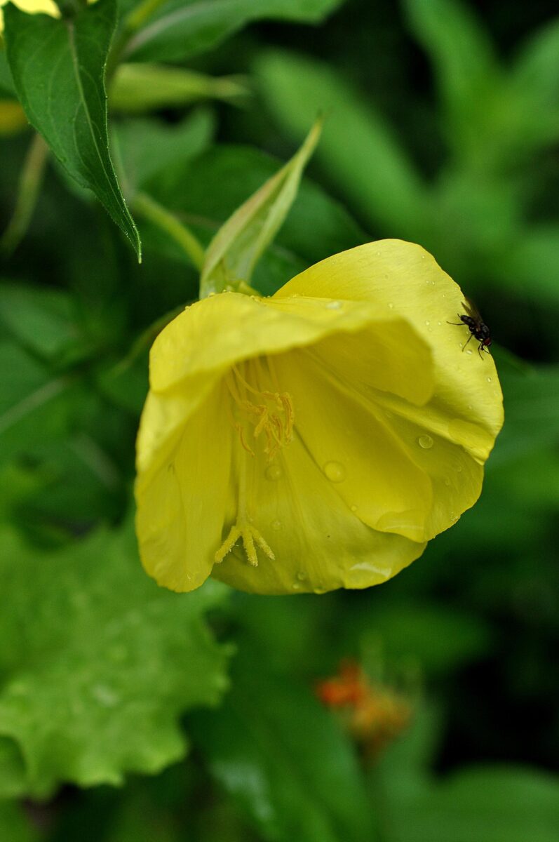 Welke soort het nu precies is, is nog wel even een dingetje. Je hebt namelijk kleine, grote en middelste teunisbloemen. Het verschil schijnt hem te zitten in de grootte van de bloemen, knobbeletjes op de stelen en de plaats van de rozet. Maar dat gaat me te ver hoor. Als iemand me zo kan vertellen welk typetje hier op de foto staat, heel graag. En anders houden we het gewoon op Teunisbloem. Teunisbloem bloeit van juni tot september. Bijzonder is dat de bloemen pas ’s avonds vanaf zes à zeven uur opengaan. Ze bloeien 24 uur en verwelken daarna. Bestuiving vindt plaats door vlindersoorten en bijen. Deze laatste trekt de plant in ruime mate aan. De middelste teunisbloem is de waardplant voor de teunisbloempijlstaart (Proserpinus proserpina).