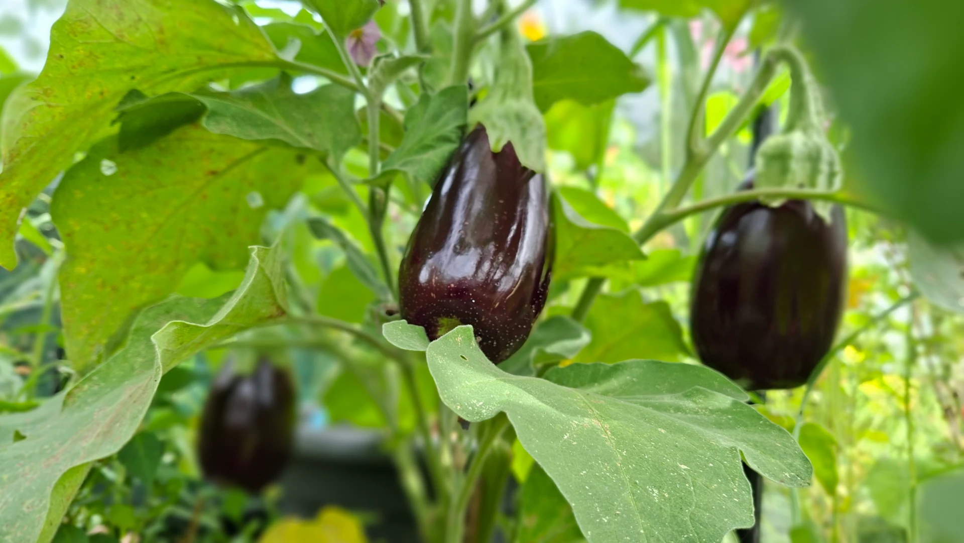 Die aubergines waren trouwens echt een succes vorig jaar. Vooral de struik die met zijn voetjes in de aarde van de kas stond deed het goed en gaf behalve mooie bloemen (met gemene stekels, au!), best een leuk aantal prachtige vruchten waarvan ik onder andere een heerlijke ‘melanzane parmigiana’ heb gemaakt, een soort vegetarische lasagna. Die aubergines houden we er dus zeker in.